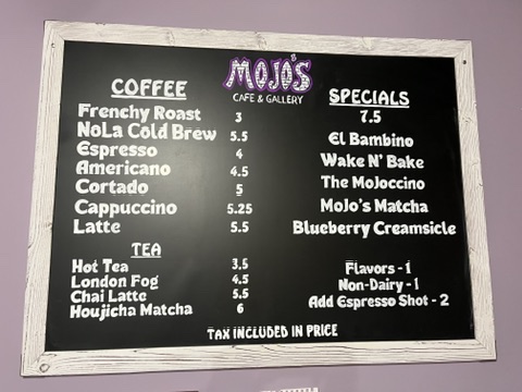 Welcome to MoJo's Cafe and Gallery, the vibrant art cafe located at 147 4th St, Troy, NY. This cozy gem blends a love for coffee, art, and community, offering a menu that delights the senses. Start your day with their expertly crafted coffees like the Frenchy Roast (US$3.00) or indulge in a refreshing NoLa Cold Brew (US$5.50). The tea selection includes comforting options like the Chai Latte (US$5.50) and unique Houjicha Matcha (US$6.00).